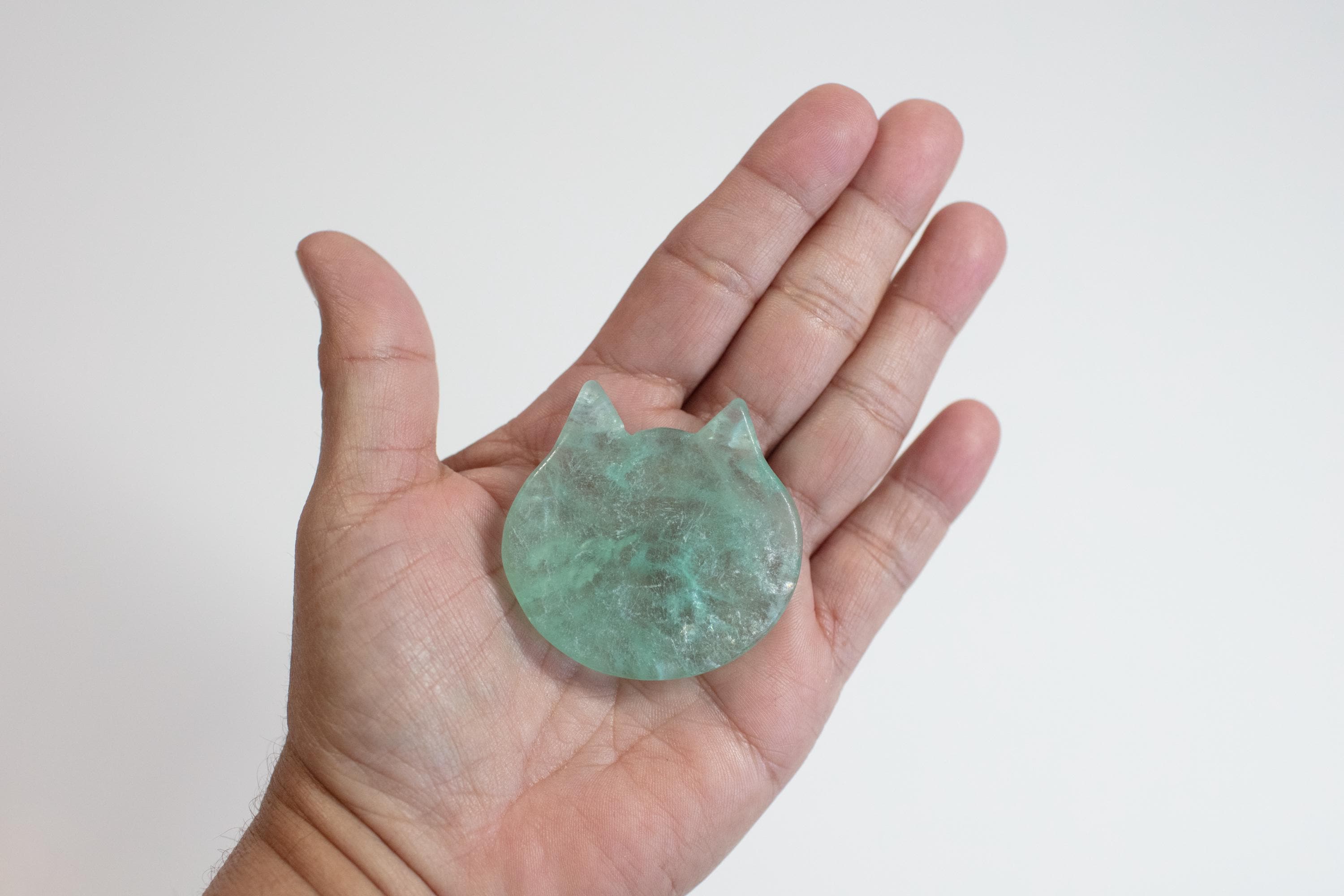 ✨ Details Natural Fluorite crystal Cat-shaped palm stone (size may vary slightly) Smooth, polished finish—perfect for meditation or fidgeting Each stone is unique in color and pattern