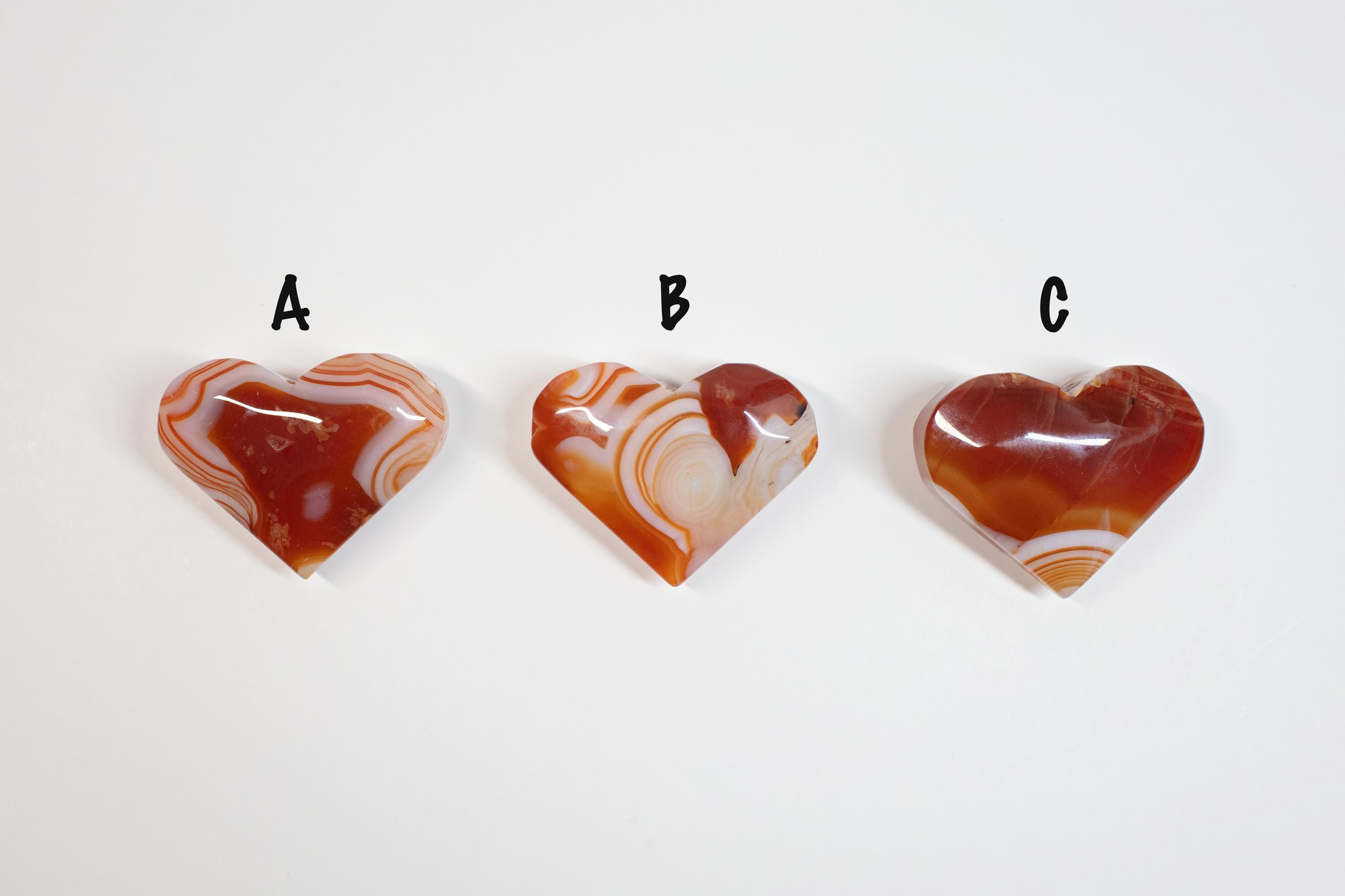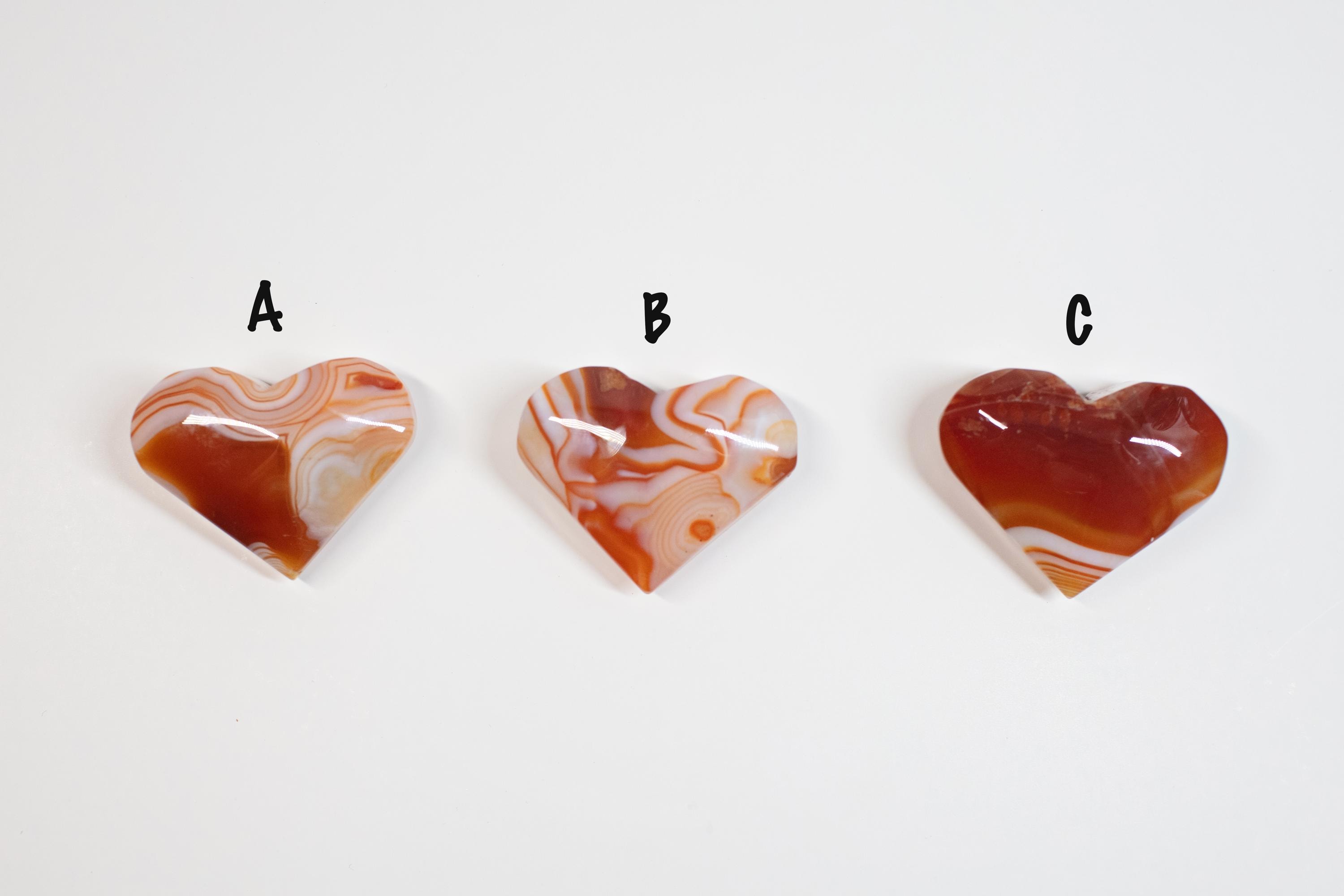✨ Details ONE Natural Carnelian crystal (You Choose) Heart-shaped palm stone approx. 2 inches wide (size may vary slightly) Smooth, polished finish—perfect for meditation or fidgeting Each stone is unique in color, tone, and natural inclusions